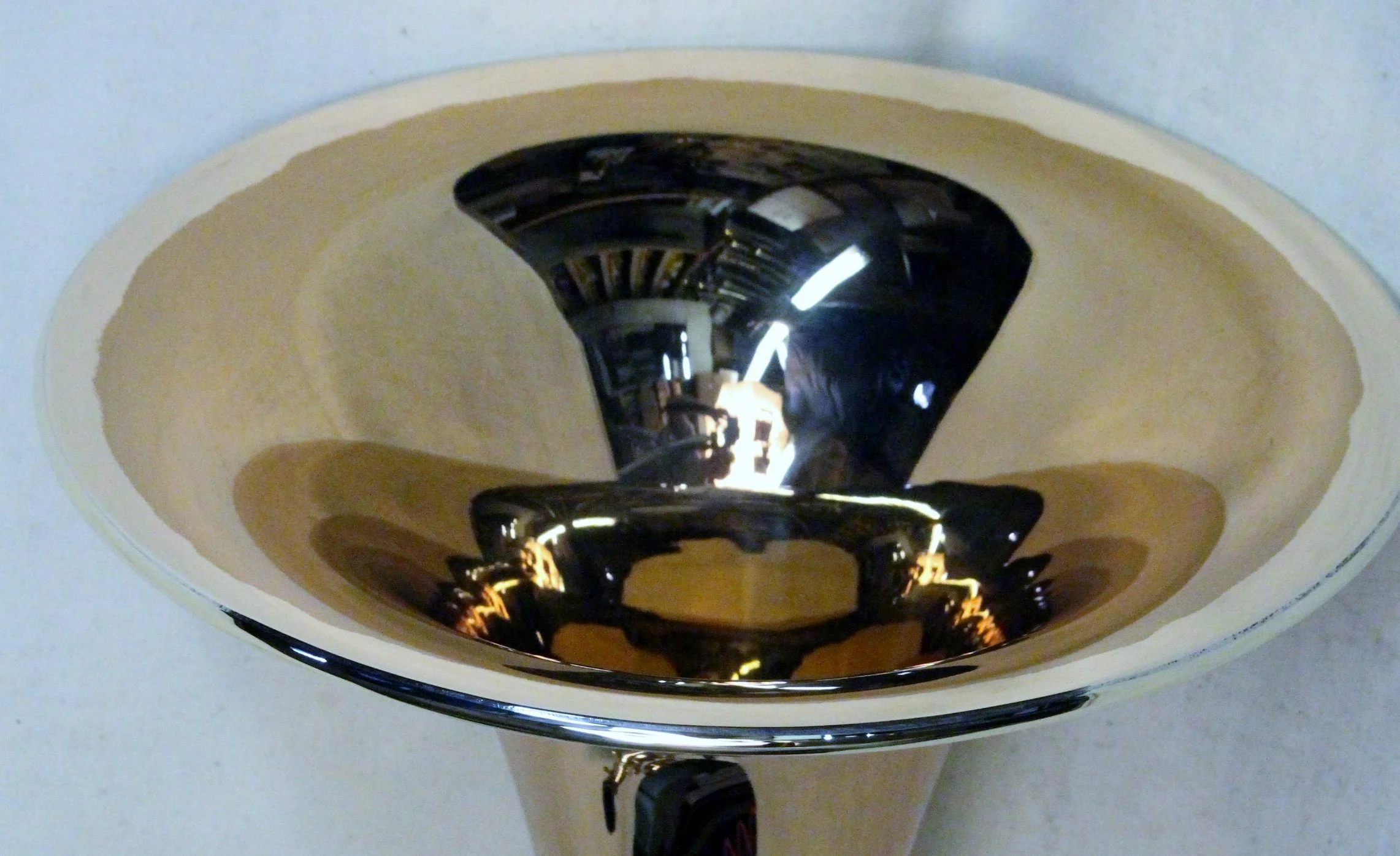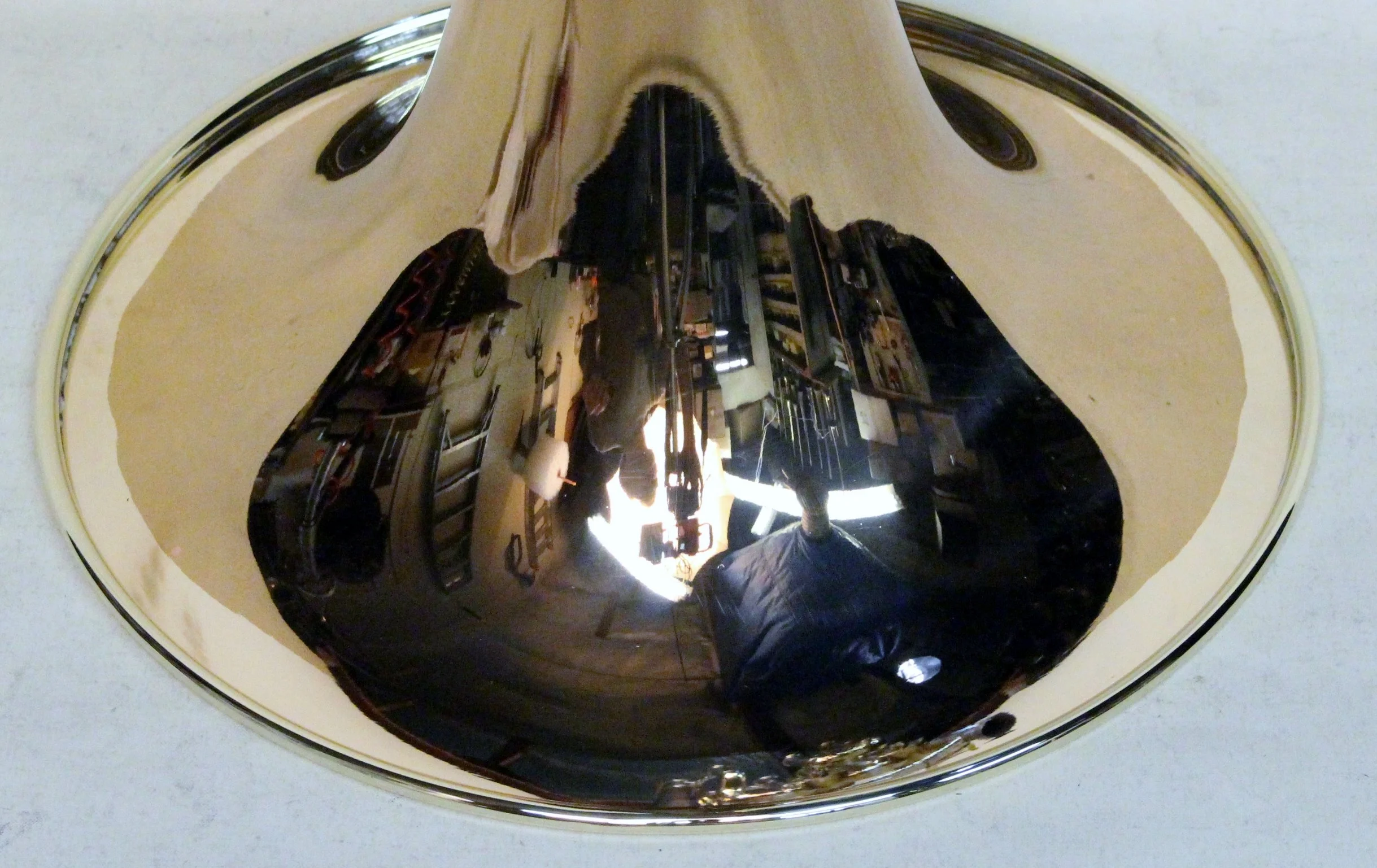 The assumption is usually that to form a rim would be to roll the bell around a wire as in most new instruments. There are a number of reason that this isn't ideal or even possible in most cases of previously finished bells. To roll the bell metal over a wire, the bell would normally be mounted on the mandrel on which it was made and spinning on a lathe. While it would be possible to make some sort of temporary mandrel from wood or plastic, this would only be possible with straight bells sections. Also, it would reduce the diameter of the rim by about 3/4" (3/8" each side), which in a repair would be unacceptable. Steve Dillon of Dillon Music tells me that they paid a machinist to build a beading machine, similar to what is used in automobile body fabrication to form a new rim. This is used mostly to reduce the rim diameter of some of the huge American BBb tubas to agree with our more modern sensibilities.