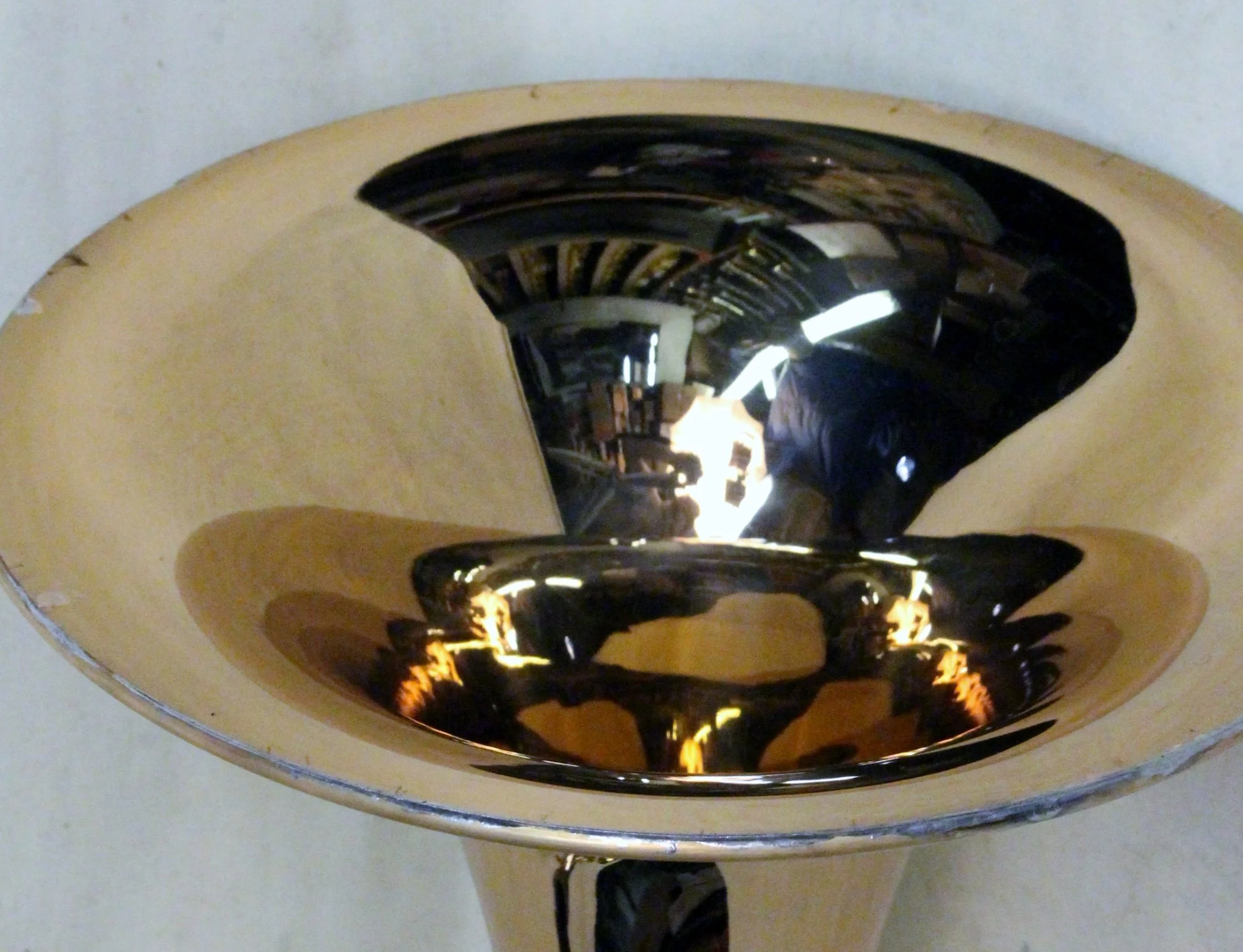 This was one of the many jobs that was first described to me by Larry Minick, in the early 1980s, when I went to him for help in restoring an antique with a ragged rim. Patches can be applied to hold it together, but this particular one had chunks missing most of the way around. If care is taken, it may be possible for the finished rim diameter to be the same as the original. A few cracks or even gaps left in the bell metal near the rim will be held together securely by the brass rod. This isn't a technique to be used on instruments of great historic importance, but rather ordinary old horns. This is also the technique used to attach the new bell rims on the Caduceus cornet and the Besson mentioned earlier.