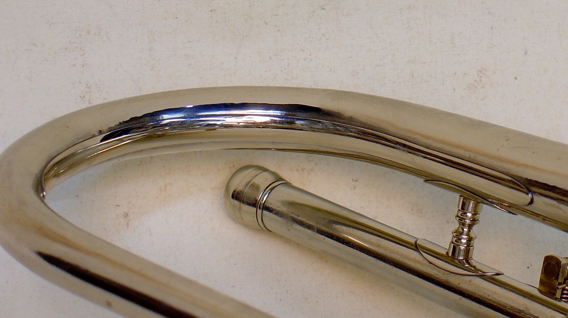 It is possible that my point of view, from which I've seen many more failures than successes, causes my criticism to be overly harsh. I have to admit that I have no way of knowing how many of these repairs are perfectly acceptable to the instrument's owner, but I caution the repairman to think of the long term survival of such an instrument. I know that we have all worked on pre-war Besson and Bach trumpets that have been sanded and buffed so hard that they have lost much of their structural and acoustical integrity. If, instead, they were treated with careful and thoughtful work, we might have had more of those great instruments to enjoy today.
